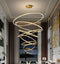 Introducing the "Golden Cascade Radiance" by Tatva Lights – a breathtaking modern LED chandelier that infuses your space with golden opulence and contemporary charm. Designed for those who appreciate artistic lighting, this statement chandelier features cascading rose gold rings ranging from 120cm to 30cm, creating a stunning visual symphony from top to bottom.