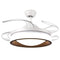 Featuring a delicately crafted glass lampshade and 4 retractable brown acrylic blades, this ceiling fan offers a seamless blend of lighting and air circulation. The blades automatically extend when the fan is turned on and retract when off, maintaining a sleek chandelier appearance when not in use.